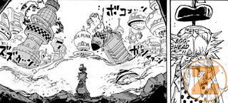 Luffy sebelumnya kehabisan tenaga setelah bertarung melawan Kizaru, namun menariknya, dia mendapatkan makanan dari seseorang yang tidak diketahui, yang dapat membuat tenaga Luffy pulih. Namun, sayangnya, saat ini dia belum dapat bergerak karena banyaknya makanan yang dikonsumsinya. Dapat jadi pada chapter selanjutnya, Luffy akan bangkit dan memulai pertarungan melawan Saturn.